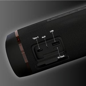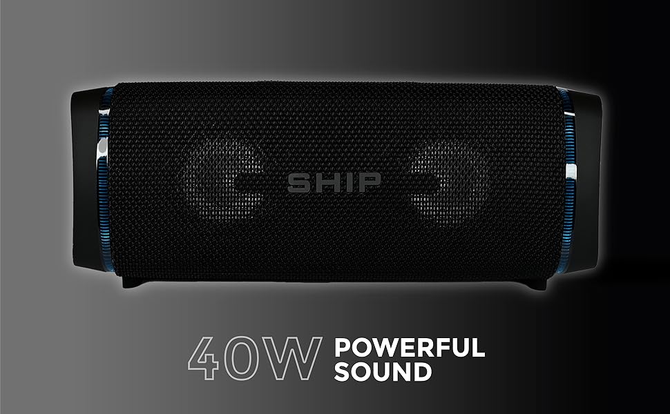 40W loud stereo sound with enhanced bass, detailed mids, and crystal clear highs without distortion at any volume.